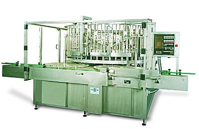 Diese Maschine arbeitet im kontinuierlichen Rundlauf und ist mit bis zu 60 Füllstationen ausgerüstet. Jede Füllstation besteht aus einem Teleskopzylinder mit unten angebrachten Drehschieber. Dieser Schieber öffnet sich nur, wenn eine Dose/Glas unter der Füllstation steht. Das bedeutet, keine Dose/Glas = keine Füllung.
